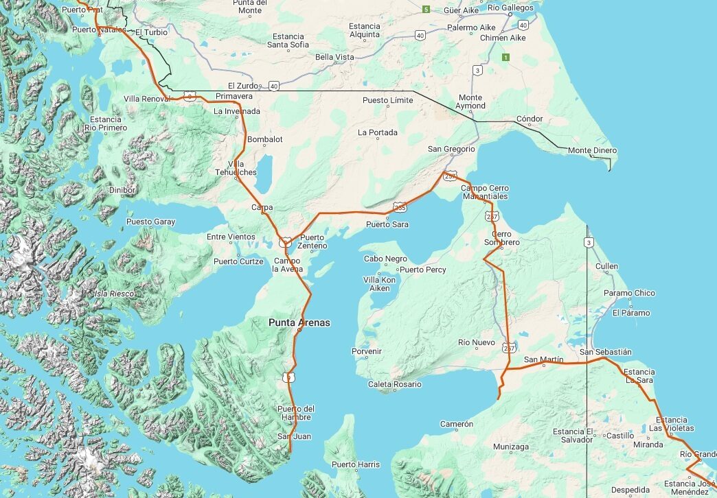 We doen boodschappen en rijden verder naar het zuiden. We zien dolfijnen zwemmen en maken in de motregen een wandeling langs de kust. We slapen op een mooi plekje aan zee. Op maandag terug in Punta Arenas vinden we een garage in die de barst hier in de voorruit kan repareren en kunnen we weer verder op weg naar Puerto Natales.